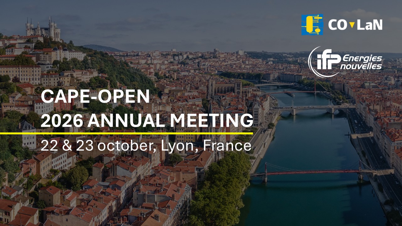 The CAPE-OPEN 2026 Annual Meeting will take place on October 22 & 23 in Lyon (France) hosted by our member IFP Energies Nouvelles. Join us for one and half days of knowledge exchange, networking, and updates. An optional training course is planned on the Friday 23rd October afternoon.